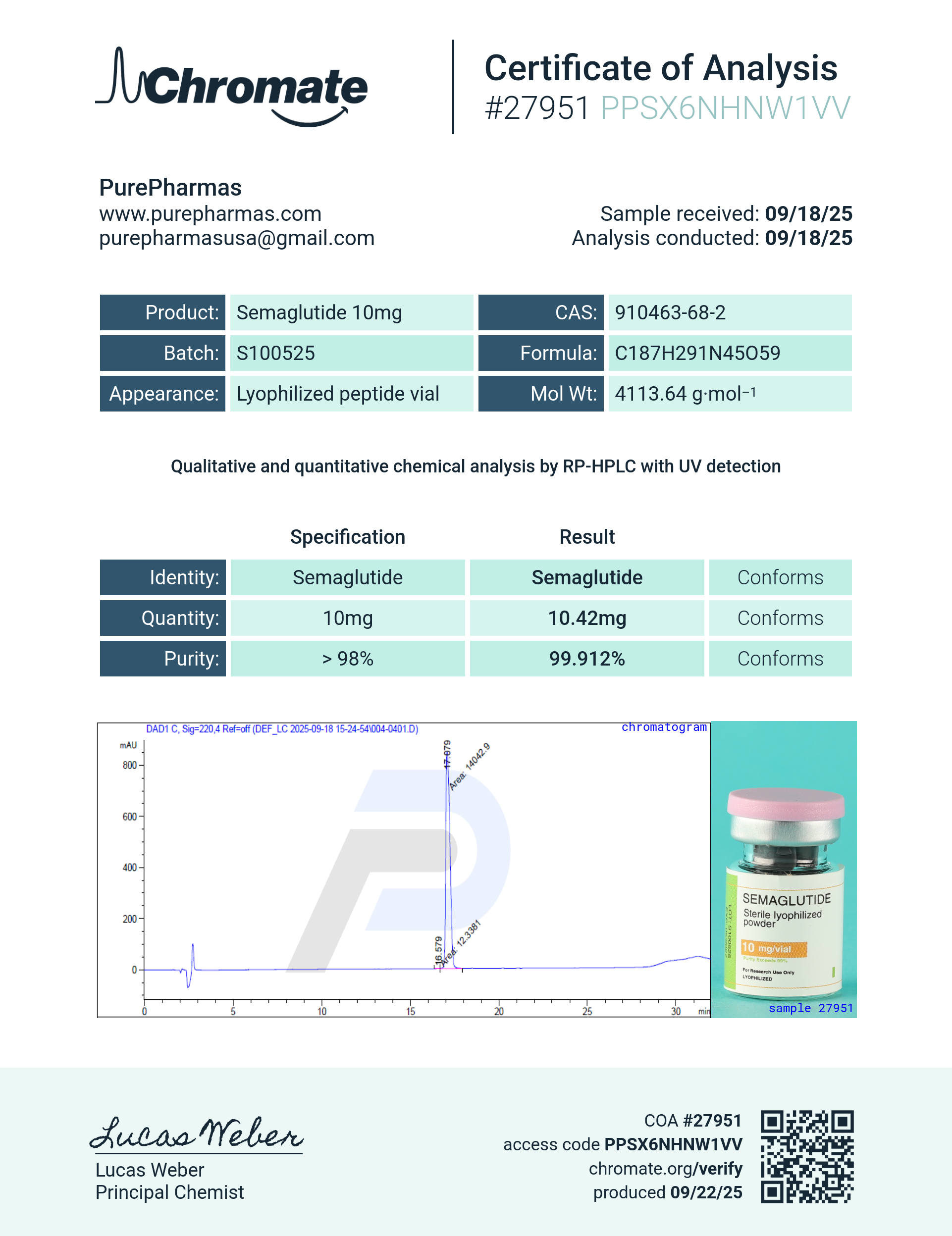 Our products undergo frequent 3rd party testing by a DEA-certified laboratory. They have been shown to have >98% purity..